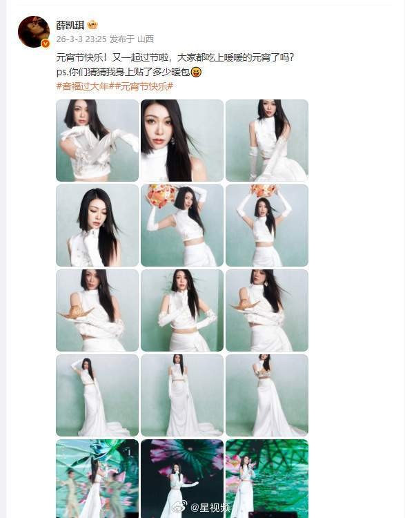 表演结束后,薛凯琪在社交平台晒出舞台照片,发文:“元宵节快乐!又一起过节啦,大家都吃上暖暖的元宵了吗?”并俏皮追问粉丝:“你们猜猜我身上贴了多少暖包。”这句调侃,意外揭开了艺人寒冬表演的幕后艰辛,即便贴了多个暖包,在低温环境下仍效果有限,挡不住生理性的颤抖。