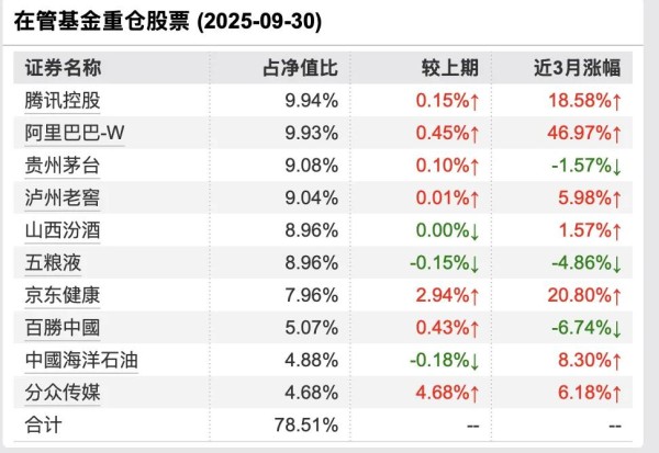 其三季度持仓结构显示,业绩的“正贡献”主要来自重仓的腾讯、阿里巴巴等互联网巨头;而合计持仓占比超过36%的贵州茅台、五粮液、泸州老窖等白酒股,则显著拖累了基金的整体表现。