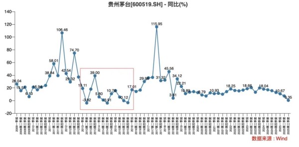 贵州茅台的三季报中,其营业收入同比增长0.35%,归母扣非净利润同比增长0.95%,明显低于前两个季度的增长情况。趋势上看,贵州茅台单季度营收同比增速已经持续5个季度下滑,四季度不排除业绩增速转为同比下滑的可能。