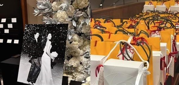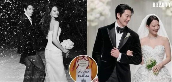 金宇彬和申敏儿为宾客准备的伴手礼格外用心,选择了法国精品美妆品牌兰蔻(Lancôme)和意大利百年香氛Acqua di Parma的产品。