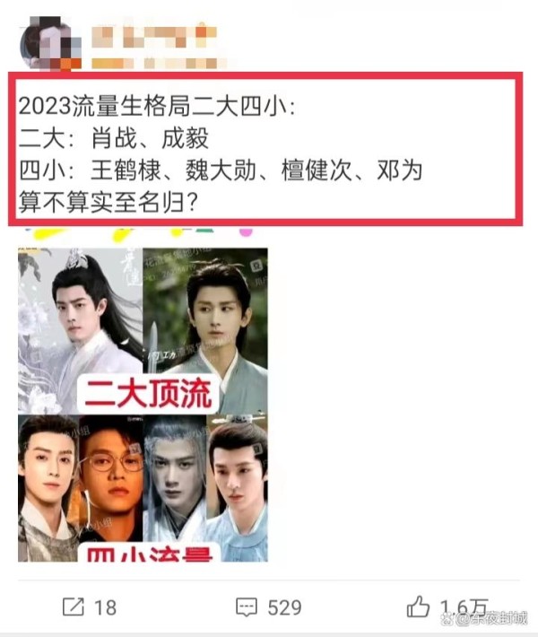 近期有网友就对2023年流量生格局排了个“儿大四小”名单,肖战是万年不变,毕竟他的流量确实足够大。