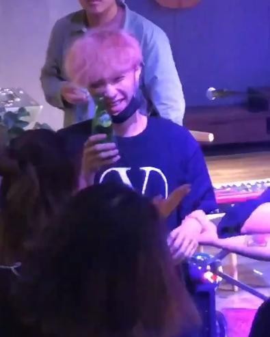 最近有网友在网上曝光了一段张艺兴在演唱会圆满成功后开庆功宴的视频,视频中我们按到张艺兴身穿黑色T恤出现,发型还是我们熟悉的那个炸炸的发型,脸上戴着口罩似乎并不想别人认出来。而在身边好朋友的推搡下,张艺兴还是拿起了手中的酒瓶对着喝。