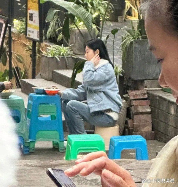 景甜在重庆吃板凳饭,穿一身牛仔装气质太出众,胖了后反而更美