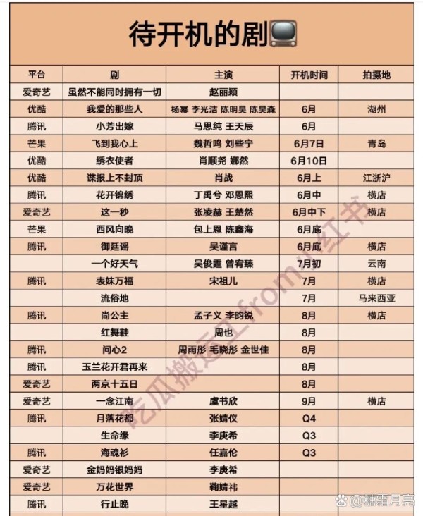 2025年6月待开拍剧单! 赵丽...@糖霜月亮的动态