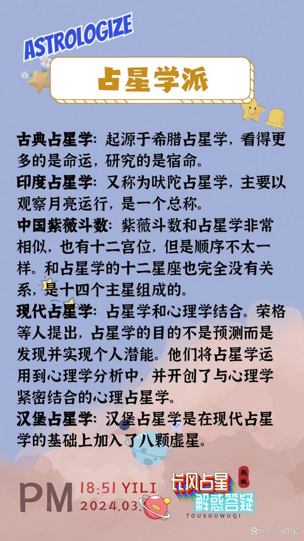 占星学的世界是丰富多彩的,让我们一起来了解一下其中的几个主要学派吧: