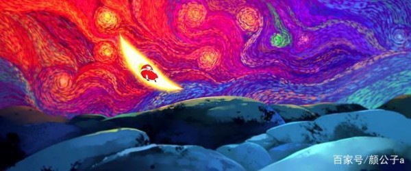 影片开篇映入眼帘的层峦叠嶂,寥寥几笔,看似简单,却非常写意。有一段镜头让我印象深刻,大护法在洞穴深处受伤昏倒后的奇异梦境,梦中的画面色彩斑斓,眼睛布满整个天空,象征着花生人们令人恐惧的假眼睛,整个画面像极了后印象主义画家梵高的名画——《星空》,充满着想象力和视觉张力。