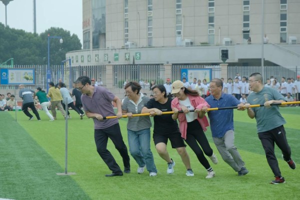为丰富教职工的课余文化生活,倡导每天健身一小时、健康生活一辈子的理念,运动会期间,学校还特别举行了教职工趣味运动会比赛。
