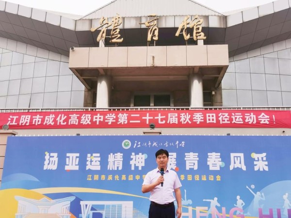 冯长平校长宣布江阴市成化高中第二十七届秋季田径运动会正式开幕。在一片欢呼声中,秋季运动会正式开始,各项比赛蓄势待发。