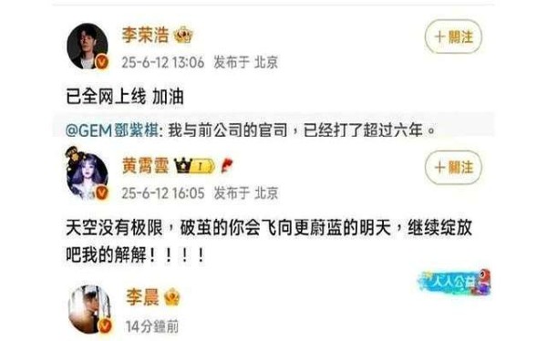紧接着,黄霄云、王嘉尔这些新生代歌手也纷纷声援。