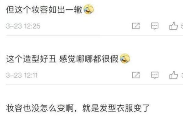 虽然这一次的妆容造型做出了改变,但网友表示这个妆容看起来还是如出一辙,造型看起来有点丑,直言鞠婧祎这一次换装失败新剧虽然造型重回半永久,但是发量多到看不见额头,只是衣服和发型做出了改变,网友直呼这发量看起来像假的什么都是假的。