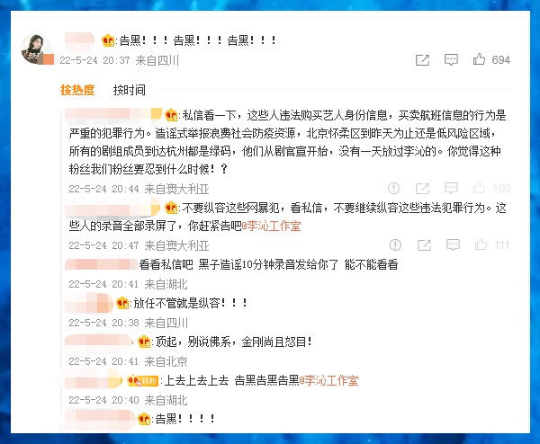 近日,剧组转场杭州拍摄,而围绕李沁的争议从未平息。有李沁粉丝爆料称,有人通过不正当途径购买艺人身份信息,曝光李沁行程,以违反防疫规定为由抹黑李沁。从该网友透露的信息可见,李沁当天从北京飞往杭州,由于北京有疫情,因此有网友以此为由再次质疑李沁存在违反防疫政策的行为。李沁网友则回应称,李沁行程涉及的区是一直都是低风险地区,而且所有剧组成员到达杭州后都显示绿码。