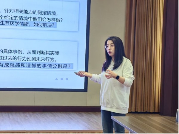 在第一个环节,学而思网校师资选聘负责人倪妮从面试类型、问题构成、应对策略等方面完整介绍了当下比较常见的结构化面试和无领导小组考核。倪妮首先从自身职业生涯切入,向同学们展示职业选择的多元性,告诫同学们不要被所学专业束缚。接下来,她向同学们展示结构化面试中的六类问题:背景性问题、理论性问题、智能性问题、动机性问题、情境性问题、行为性问题,详细讲解每一类问题的底层逻辑并附上示例进行说明。在面试技巧方面,倪妮告诉同学们要做好面试准备,充分了解将要进入的企业,在自我介绍中要突出自身的强稳定性、高意向度和自身优势,在面试过程中做到自信大方;她还特别介绍了STAR法则,提醒同学们在进行表述时所要注意的四大要素(Situation, Task, Action, Result)。除此之外,倪妮还专门介绍了针对应届生的行为面试题,指出这些提问背后包含着学习能力、人际能力、压力承受能力、合作性、独立性、主动性等方面的测评维度。最后,倪妮将无领导小组讨论的四个环节(资料阅读、个人陈述、自由讨论、总结报告)分解开来,对每一个环节都进行了详细的介绍并给出相应的策略和建议。