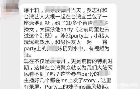 罗志祥人设崩了:和女艺人关系不正当,挖欧弟墙角,开嫩模派对罗志祥回应泳池派对事件:单纯的朋友生日聚会,场面没有那么夸张