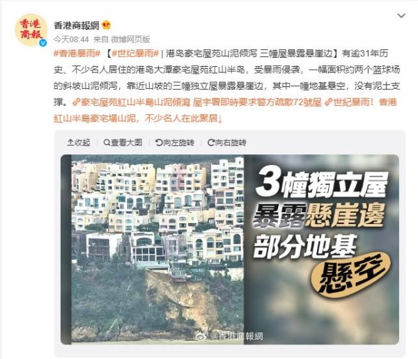 原标题:《暴雨侵袭!香港红山半岛豪宅塌山泥,不少明星在此居住》