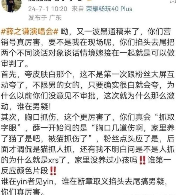 这也正如那位当事女粉丝所说:"差不多得了,这也就是正常人,现在的人说出这种话一点都不奇怪。普通人嘴里说出来根本不会怎么样,只是因为老薛是艺人,所以被无限放大,加上可能是有人故意发酵,才会认定他成了这番模样。"