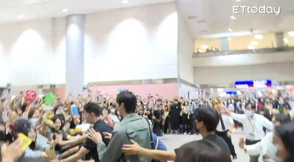 边佑锡亲切回应现场每个拍摄镜头,原本拍摄暂时告一段落,他走近机场大厅苦候许久的粉丝。不过当他走近时,红龙围栏外的粉丝瞬间尖叫凑近,拥上的热情几乎快失控,他也因此在身旁人员保护下退后几步。