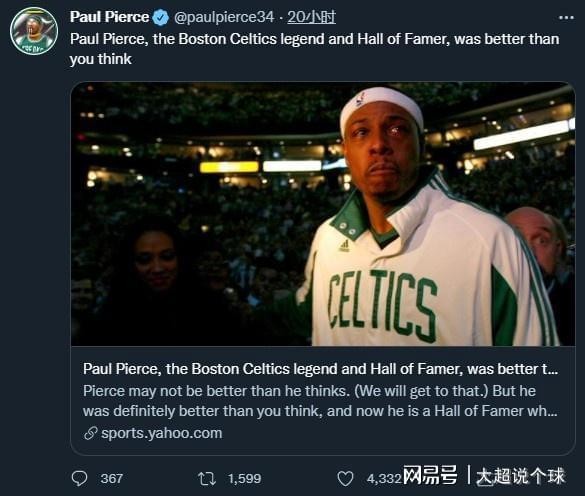 皮尔斯则在今天更加开心,因为此前他因为邀请脱衣女郎直播被停掉了ESPN工作,还差点被剥夺名人堂席位!所以今日他晒出了自己的照片附文“这一刻我特别要向我的黑子们鞠个躬”然后又发了一段话“保罗-皮尔斯,名人堂成员,凯尔特人传奇球星,比你想象中更好的那个男人。”似乎在向喷子喊话:让你们认识认识如此出色的我,我都进名人堂了,还咋喷我?