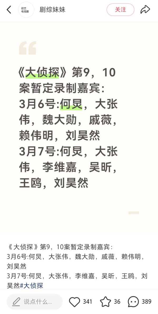 《大侦探》官宣,线下录制过半,何炅、魏大勋、张若昀等成员回归