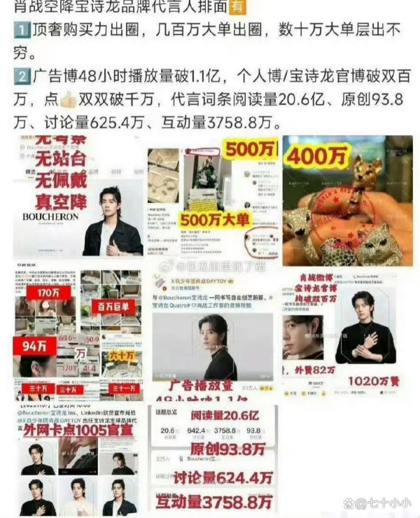 这种合作已超越传统代言模式。Gucci为肖战提供私人专机、定制服装,甚至将他走秀的成衣永久封存,这些“非商品化”待遇,将艺人从“代言人”升格为“创意合伙人”。品牌通过微博、小红书等平台,在官宣瞬间引爆社交声量——Gucci单日发布6条相关微博,视频播放量达2400万,TODS天猫粉丝单日增长超10万。这种“高规格传播+即时电商转化”的闭环,已成为开云集团在中国市场的标准动作。