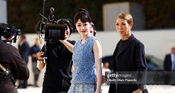 秀场最抢镜的不是巨星、也不是品牌,而是旁边的网红嘉宾。名气不大但品牌VIP身份分分钟拿下C位。整容痕迹一览无余,苹果肌高耸、额头“上了蜡”,但穿搭却比董璇精致多了。米白色香风套装,高腰裙拉长比例,造型优雅,妥妥的“归国千金”。两人同框,年龄差一摆,网友可不会手软,弹幕里早就炸开锅。一边是时尚感在线的网红,一边是造型翻车的女星,岁月与精修的对决就在这一帧里。