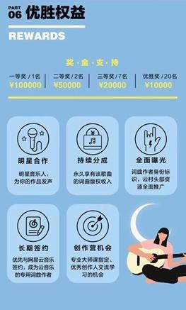 除了基础的词曲课程外,实操也是本次创作营的重要内容之一。在营期间,学员们会以个人和小组合作的形式进行音乐创作,所有demo经过导师团的两轮评分决出优胜。据了解,本届星辰集·词曲创作大赛的冠军将于创作营诞生,优胜作品将会获得现金奖励、明星合作、流量扶持、签约机会等丰厚权益。