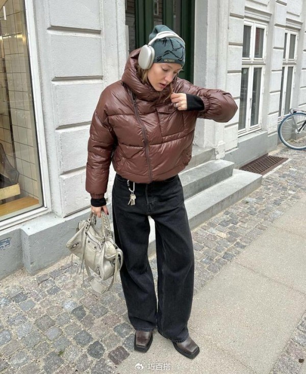冬季短款羽绒服,明星和潮人的穿搭造型,时髦搭配借鉴出街
