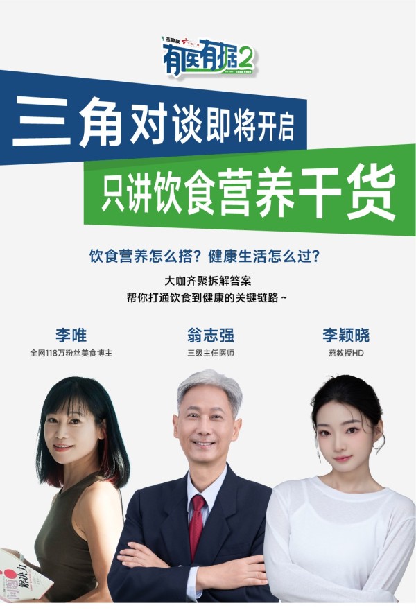 本期节目堪称医学与生活的专业碰撞,邀请了医学专业人士翁志强医生、美食博主李唯与健康宝妈颖晓三位“王牌嘉宾”。他们从“医学理论”与“生活实践”两个维度,全方位拆解健康饮食,为观众带来满满实用干货。