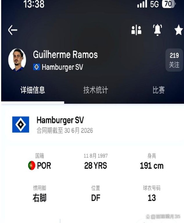消息说,国安盯上的人是28岁的葡萄牙中卫吉列尔梅·拉莫斯,身高1米91,履历里有葡超圣克拉拉、德乙主力和德甲替补的经历,交易价大约70万欧。