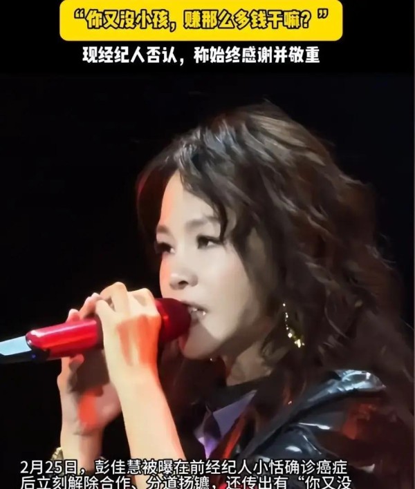 时空转换至台湾娱乐圈,另一则新闻牵动人心。歌坛实力派彭佳慧与经纪人苏莹恬的合作长达十余年,彼此间缔结了深厚情感。孰料,苏莹恬被确诊癌症后,二人合作关系突然终止,且据称彭佳慧语出伤人“你又没有小孩,赚那么多钱干嘛”的冷漠话语,令风波一发不可收拾。此次事件在社媒与粉丝群体中引发激烈争议,支持者坚信彭佳慧不会做出如此无情之事,认为背后有不可言说的复杂原因。