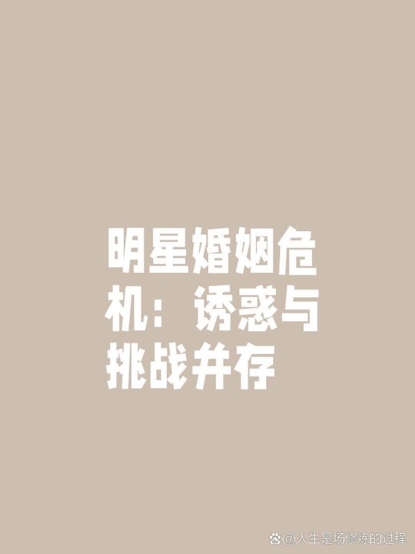 娱乐圈充满了帅哥美女,诱惑无处不在。在这样的环境下,明星们的婚姻自然面临着更多的考验。但是,是否所有的诱惑都会导致出轨呢?我们不禁要问,是诱惑本身难以抗拒,还是婚姻的稳固程度不够?