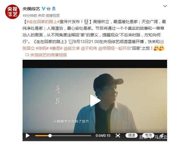 央视也出真人秀了,《走在回家的路上》定档,姜昆佟丽娅不忘初心