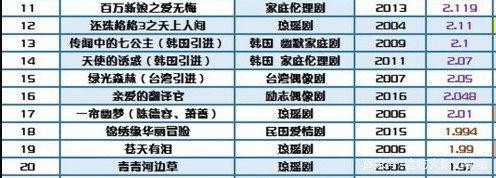 而《还珠格格之天上人间》2004年播出,排名第12,后来2011年翻拍的《新还珠格格》只排在第49名。