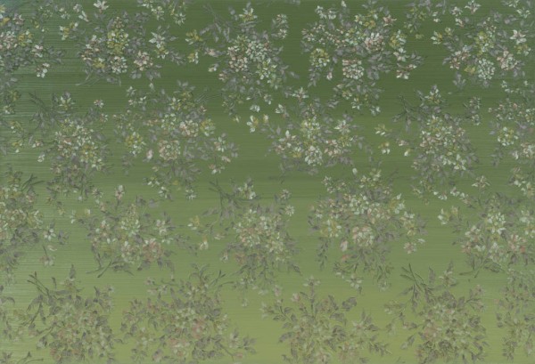 中国艺术家梁远苇2011年的作品《穿过玻璃》则带有东方禅意,梁远苇将家庭中常见的旧式纺织品、墙纸或窗帘这些平面纹样油画化,探讨了物质文明与个人记忆的链接。