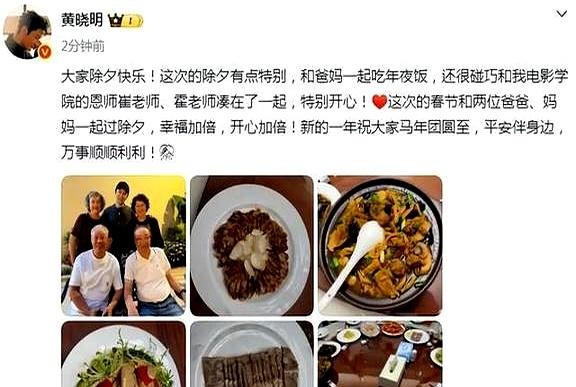 黄晓明在社交媒体上公布照片,表达了对家庭、老师的重视。