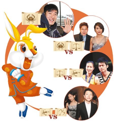 星座分析:被视为具有吸引力的一对。巨蟹座的霍启刚和天秤座的郭晶晶彼此间具有一种催化效应,这种有趣的精神互动,能使双方都接纳对方的某些态度。这种情况可使他们反过来发现了以前看不到的自我面貌。郭晶晶亲密关系中常常希望有一双强壮的臂膀可以依靠。在生活上,建设性地排解感情伤痛,是郭晶晶必须学习的重大课题。
