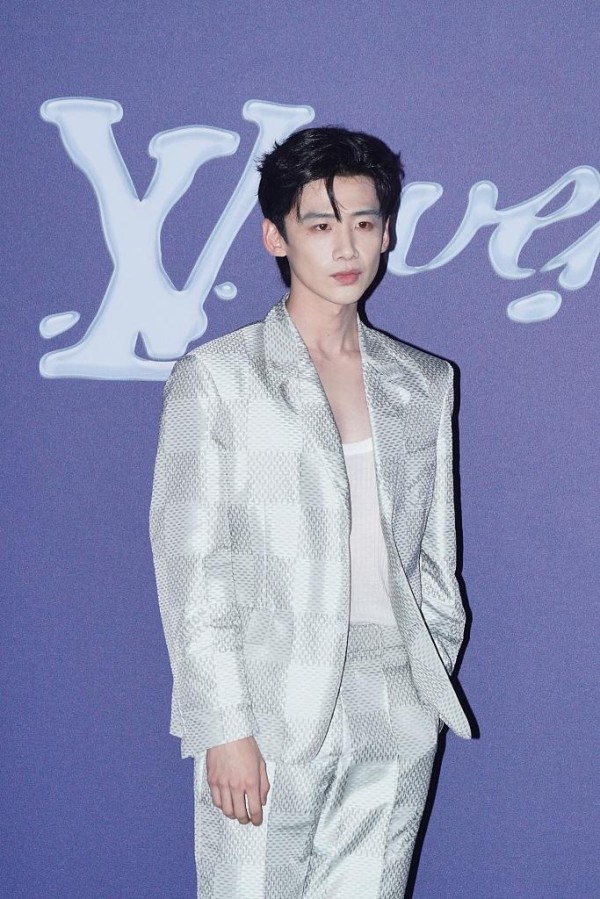 让我们把目光投向当晚的其他男星。 稳居合照C位的王嘉尔,一身深V黑色西装,背头梳得一丝不苟。 现场他甚至幽默地提醒摄影师“帮忙P掉痘痘贴”,这份游刃有余的松弛感,与他全球代言人的身份相得益彰。 更不用提仅仅一周后,在2026年1月21日的巴黎路易威登秋冬男装大秀上,王嘉尔与品牌男装创意总监菲董(Pharrell Williams)及说唱歌手Pusha T合作的新歌《Sex God》,被选为官方秀场背景音乐全球首播。 这标志着他的身份已从单纯的品牌代言人,跃升为深度的内容共创者。 他的时尚版图,早已超越了某一场活动的生图好坏。