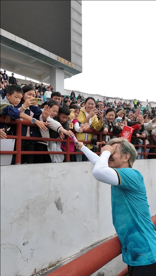 当日午后,滨湖体育场外人头攒动,球迷与市民手持应援牌、举着相机,争相记录这场难得的文体盛会。下午3时,随着陈百祥、王晶等明星球员身着统一队服步入球场,现场瞬间爆发出雷鸣般的欢呼。