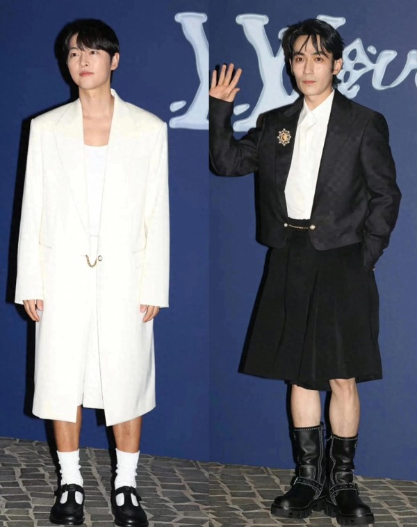 而宋仲基穿着白袜半身裙全套女装的形象更是引发了热议。这些男明星的形象不仅展现了时尚的多样性,也挑战了传统的性别角色和审美观念。