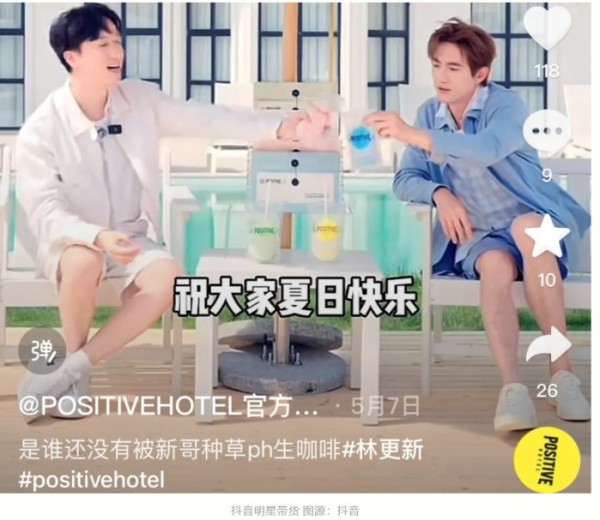 在请明星代言这件事上,POSITIVE HOTEL花了大价钱——请林更新做代言人,拍摄了一系列物料,在明星圈子内也引发了一波小高潮,很多明星在片场被拍到拿着袋装的咖啡,着实给品牌吸引了一波不小的流量。