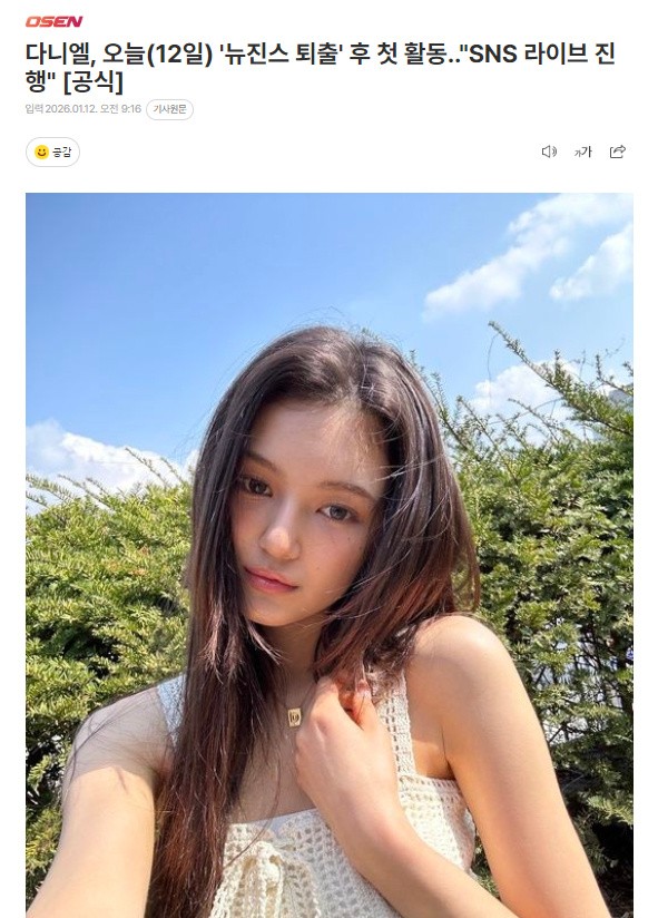 中国娱乐网讯 www.yule.com.cn 12日,DANIELLE法务代理人方面表示,DANIELLE将于韩国时间今日下午7时通过个人社交媒体频道与粉丝们直接见面,进行“Live Message”。
