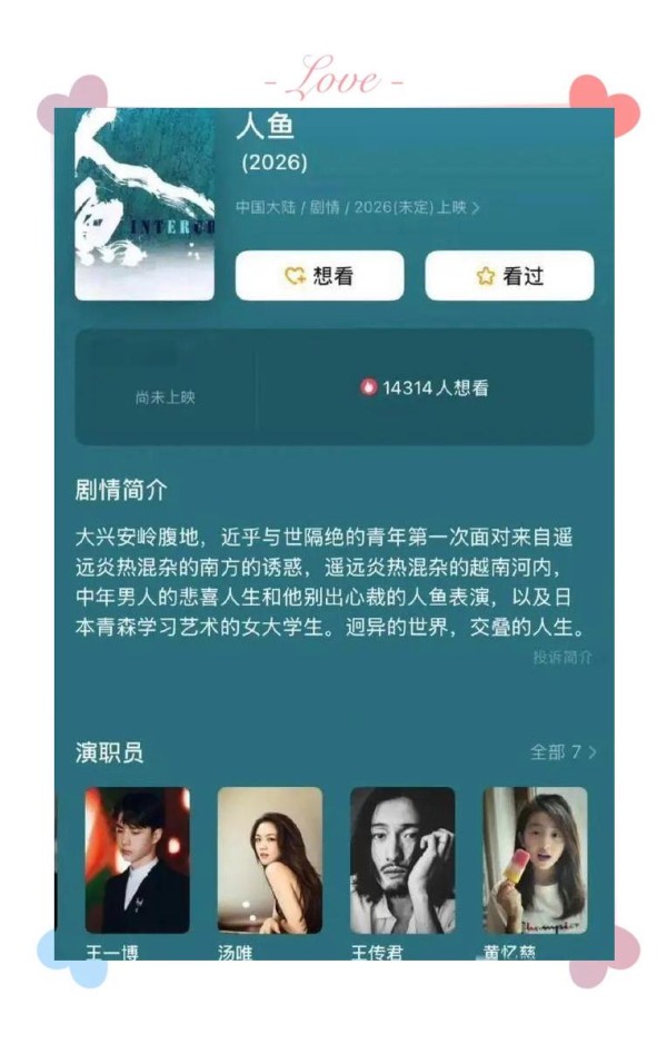 说实话,《人鱼》这部电影确实让我颇为期待。程耳导演的作品向来以独特的风格、强烈的画面感和丰富的故事性吸引观众。王一博近年来演技的显著提升已使他摆脱了“靠颜值吃饭”的标签,而汤唯的加盟更为这部戏的质量增添了保障。