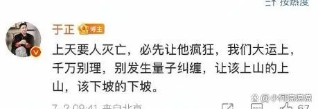 面对白鹿粉丝的请求,于正没有选择温和灭火,反而甩出了几句意义不明的话。