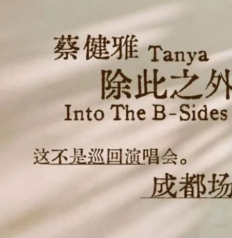 【导语】:蔡健雅 除此之外 Into The B-Sides 这不是巡回演唱会-成都场时间:2026.05.23 周六 19:00,场馆:成都市 | 成都金融城演艺中心。