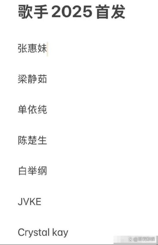《歌手2025》首发阵容曝光,何洁、马嘉祺报名,陈楚生成定海神针《歌手2025》首发阵容揭晓,陈楚生领衔加盟