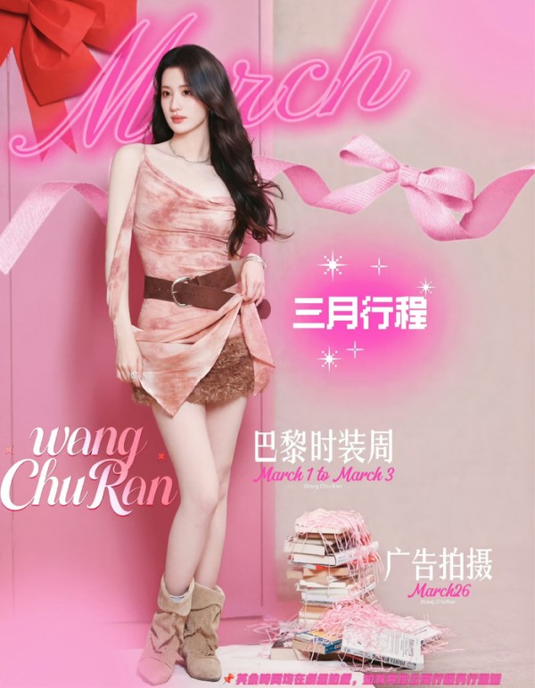 再来看王楚然的,3月1日至3月3日参加巴黎时装周,3月26日有广告拍摄,其余时间在剧组。