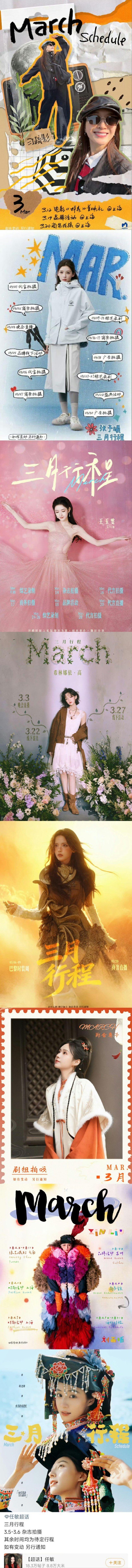 女明星三月行程图汇总来了,有刘诗诗、宋祖儿、卢昱晓等!