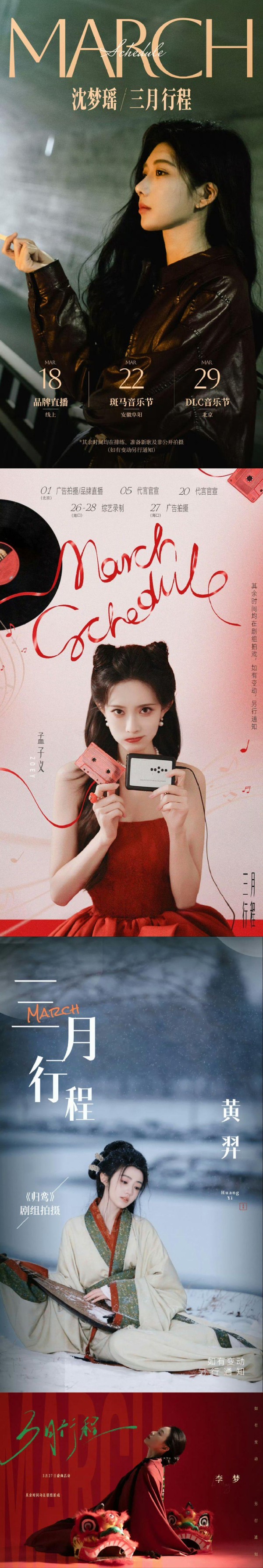 女明星三月行程图汇总来了,有刘诗诗、宋祖儿、卢昱晓、王楚然等