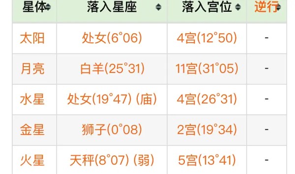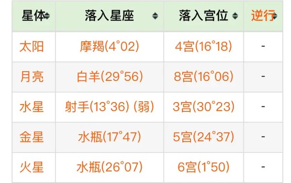 因为想突出落座配置,就不放星盘的图了。生日标好了有兴趣自己去爱星盘细看吧。(下面的宫位都不用看)