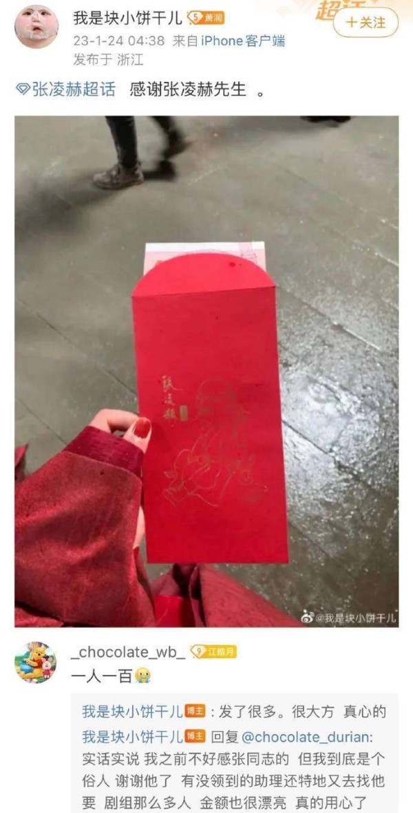 张凌赫剧组过年!助理发红包零食,粉丝:暖心又宠粉