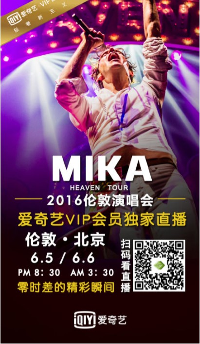 可以说,爱奇艺的独家直播,不仅为歌迷奉献了一场视听盛宴,精彩呈现了两岸歌手的交流互动,更再一次成功地将华语音乐推向世界。而紧接着在6月6日凌晨3时30分,英国音乐鬼才MIKA的伦敦个人演唱会也在爱奇艺独家同步呈现,这也是欧美艺人首次在中国直播个人演唱会。这个夏天,锁定爱奇艺,更多音乐带你嗨!